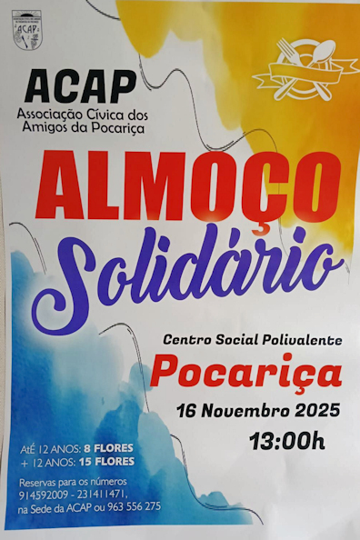 A ACAP realiza almoço solidário no próximo dia 16 de novembro 2025.